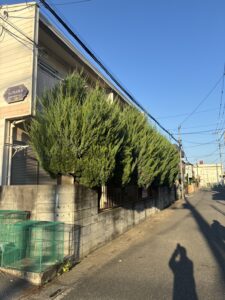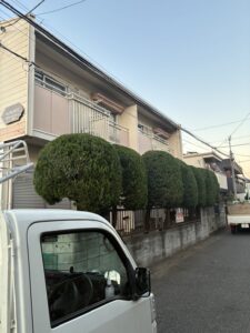 さいたま市 緑彩ガーデン株式会社です。さいたま市北区アパートの刈込作業です。