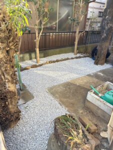 さいたま市 緑彩ガーデン株式会社です。防草シートを施工した後に砂利を入れさせて頂きました。庭が明るくなりました!