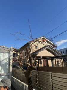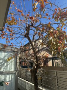 さいたま市 緑彩ガーデン株式会社です。ホーページからの連絡ありがとうございます。さいたま市北区Kさま 柿の収穫後の剪定作業です。今年は柿が豊作で収穫した後に短く枝落とし作業させて頂きました。