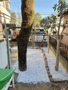 さいたま市 緑彩ガーデン株式会社です。防草シートを施工した後に砂利を入れさせて頂きました。庭が明るくなりました!