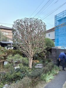 さいたま市 緑彩ガーデン株式会社です。さいたま市北区Iさま、毎年の剪定作業のご依頼有難うございます。キンモクセイの剪定作業、毎年 刈込作業をしていましたが、今回は透かして剪定させて頂きました。作業後を見て頂きスッキリした事でご満足を頂けました。
