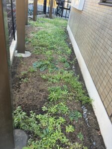 さいたま市 緑彩ガーデン株式会社です。 除草作業をさせて頂きました。さいたま市見沼区です。今年の夏 猛暑を想定して防草シート施工をお勧めします。