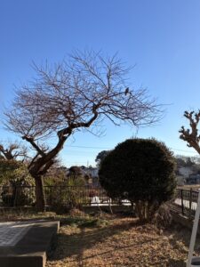さいたま市 緑彩ガーデン株式会社です。毎年のご依頼 さいたま市西区Tさま 梅の木 剪定作業です。上部に伸びた梅の枝落とし作業です。
