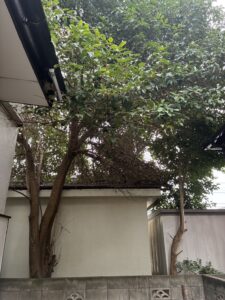 さいたま市 緑彩ガーデン株式会社です。さいたま市北区Tさまからのご依頼です。敷地から大きく成長した雑木の伐採作業です。