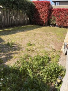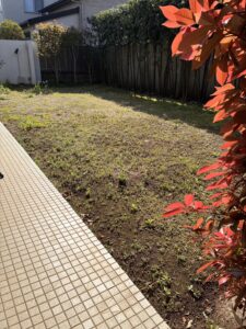 さいたま市 緑彩ガーデン株式会社です。さいたま市浦和区Kさま 除草作業の後 人工芝の施工のご依頼です。本日から3日間 作業させて頂きます。