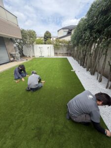 人工芝の最大のメリットは、「手入れ不要の美しさ」と「環境に左右されない高耐久性」です。水やりや草刈りが不要で、年中青々とした景観を維持でき、防草シートと併用することで雑草や虫の発生も大幅に抑制できます